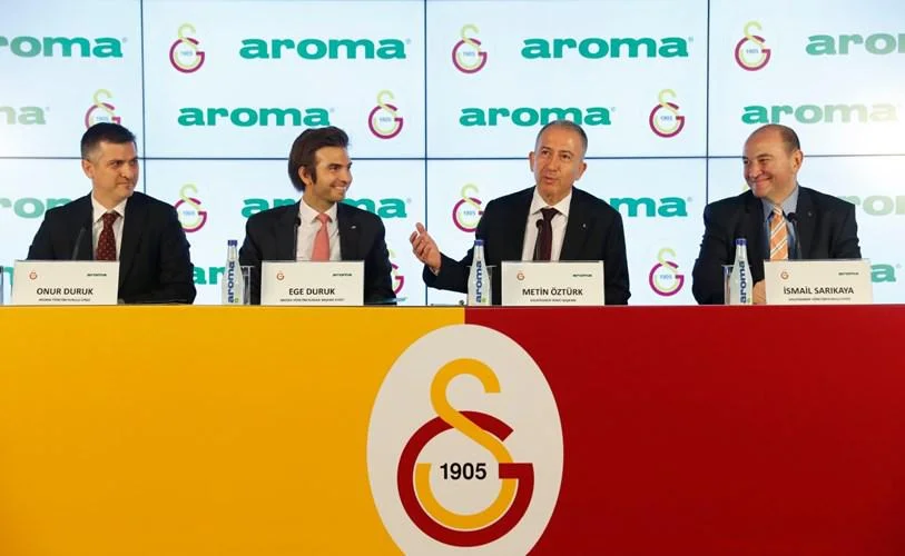 Ali Sami Yen Spor Kompleksi Nef Stadyumu’nda düzenlenen sponsorluk basın toplantısına Galatasaray Spor Kulübü İkinci Başkanı Metin Öztürk, Galatasaray Spor Kulübü Yönetim Kurulu Üyesi İsmail Sarıkaya, Aroma A.Ş. Yönetim Kurulu Başkanvekili Ege Duruk, Aroma Onur Duruk katılımıyla gerçekleştirildi.
